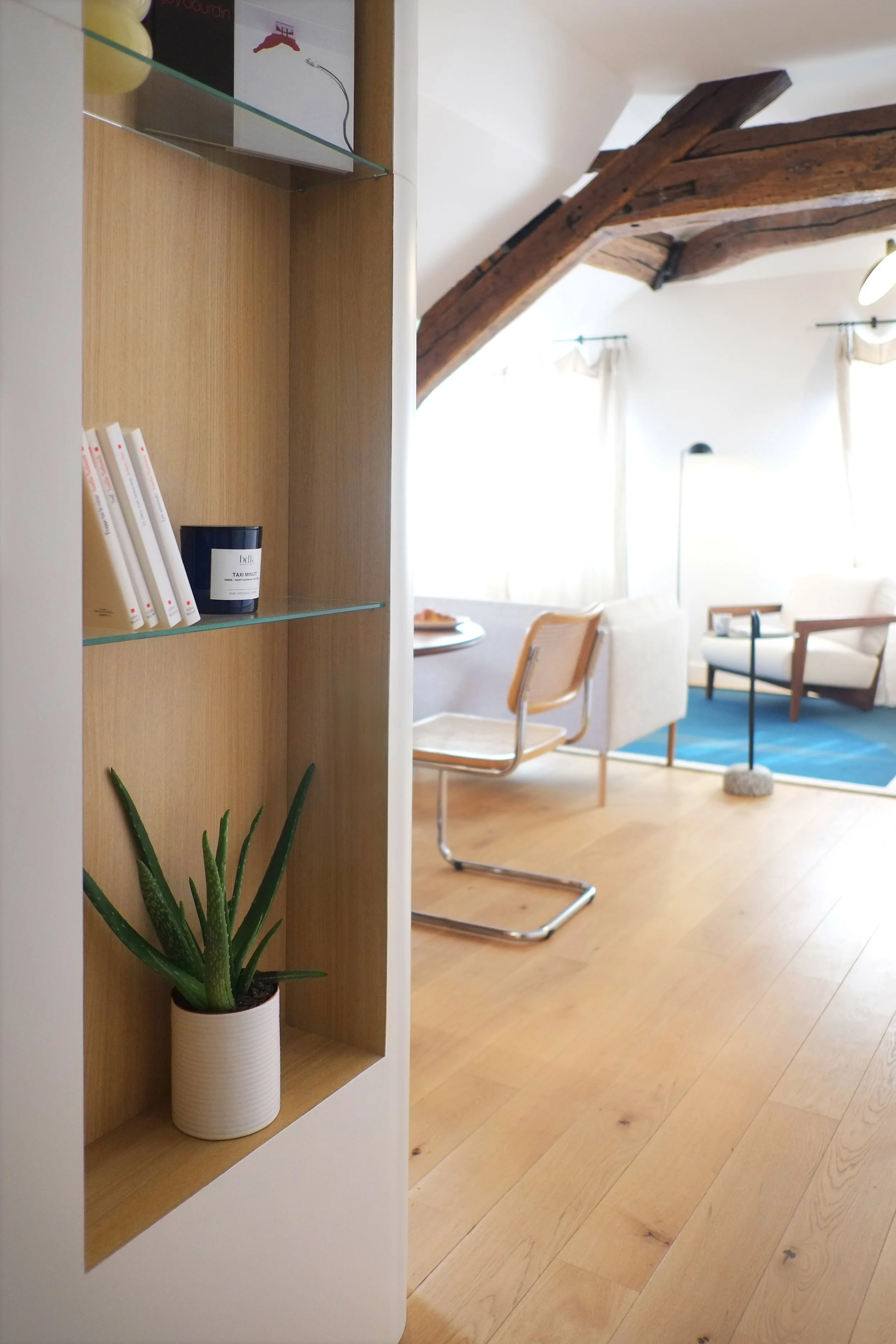 Mise en couleur, aménagement et décoration de l’appartement.